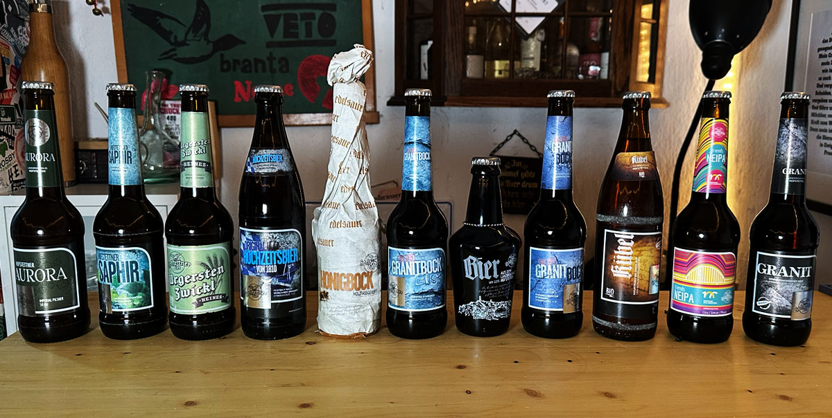Das Granit Bier hat seinen Namen aus der alten Steinmetz Epoche. Für das Bier nimmt man die Granitsteine und führt sie in die Maische ein. Die Maische beginnt zu kochen und es entstehen dabei die essenziellen Röstaromen. Darum hat das Bier auch eine rötliche Farbe und einen leicht braunen Schaum. Das Malz schmeckt auf der Zunge nach Karamell und der Mittelteil ist gut karbonisiert, was es auch erfrischend macht. Der Abgang ist mit Karamell untermalt und spielt süßlich im Gaumen.