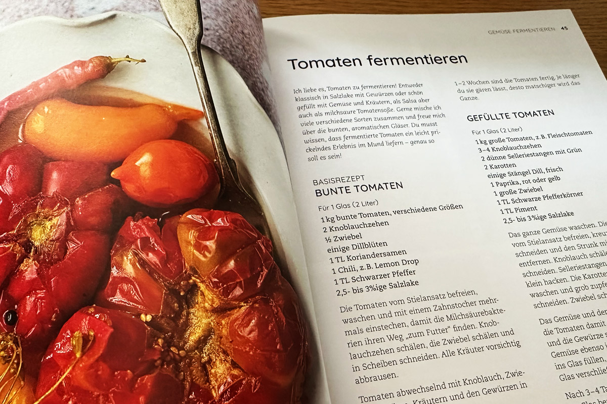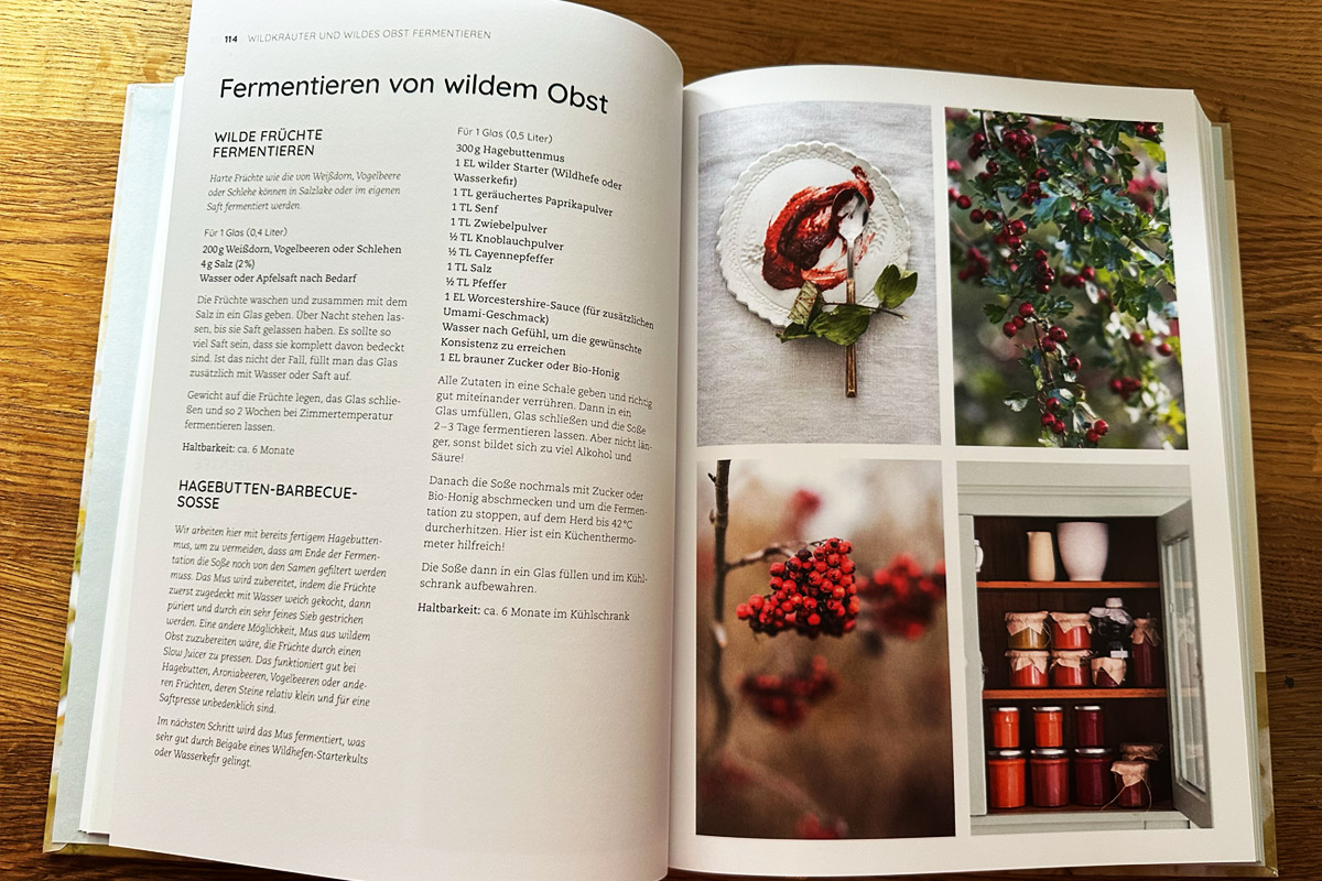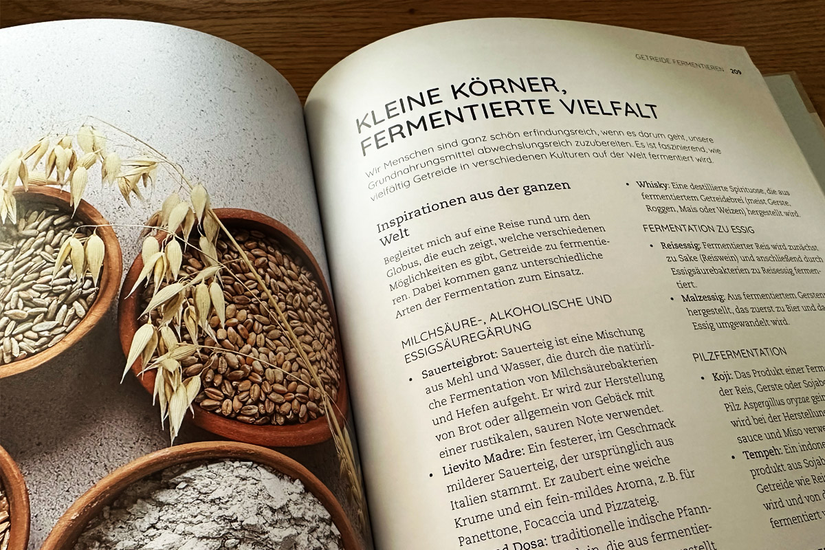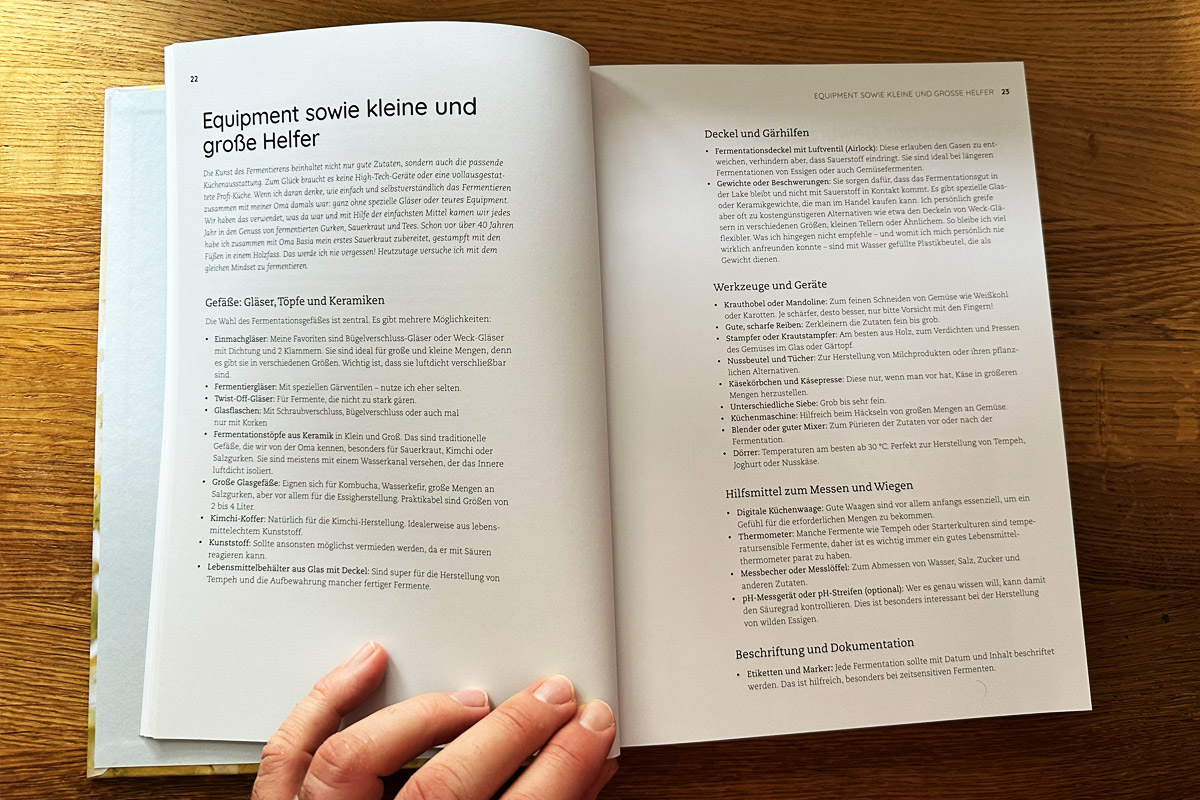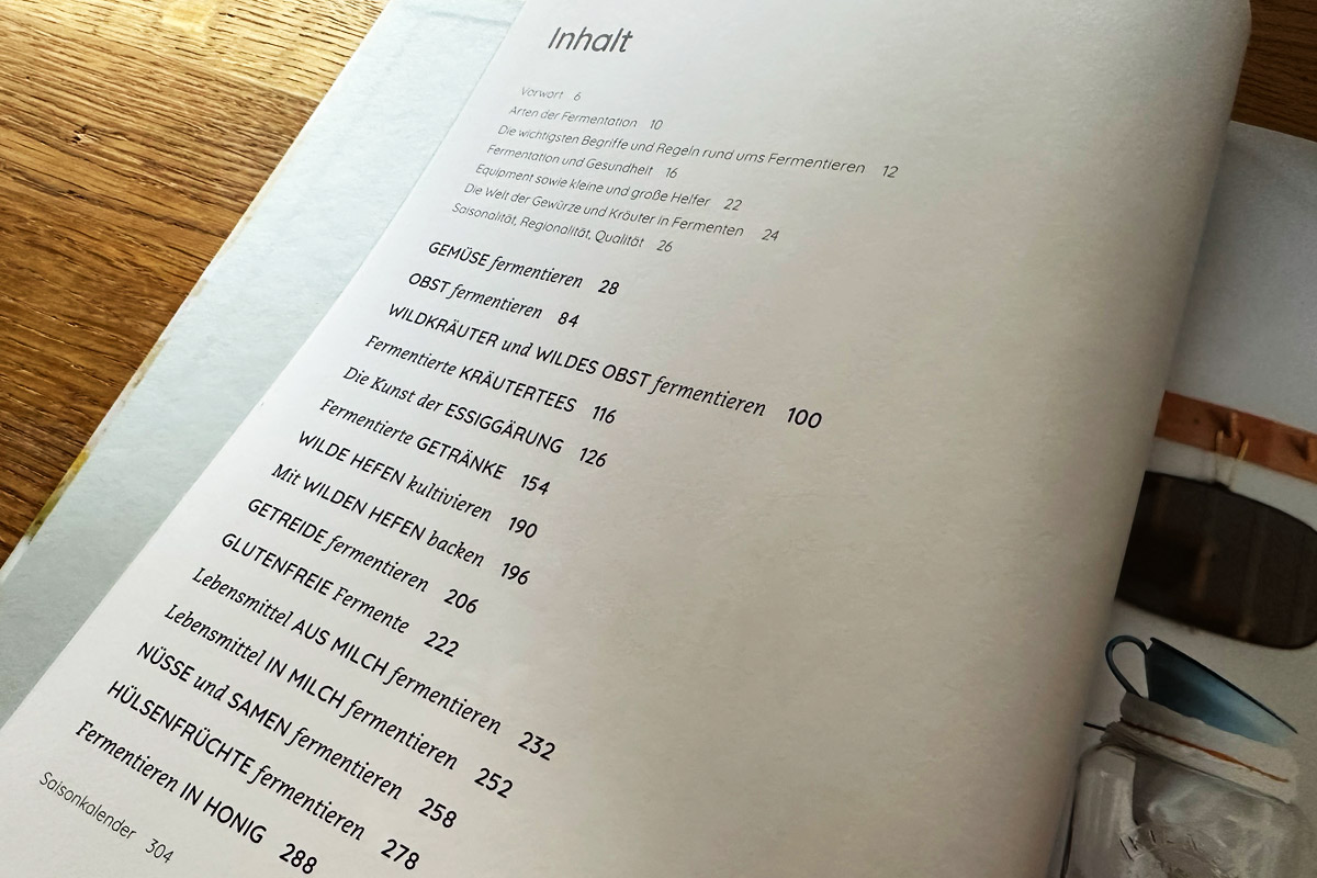 Nach einer genauen Einleitung in die Thematik der Fermentation, geht es auch um die Themen Hygiene und Gesundheit. Was richtet so eine Fermentation überhaupt aus und wie ist sie zu verstehen? Das wird im Buch sehr gut erklärt und ausführlich behandelt. Darüber hinaus haben uns besonders die Rezepte für Rhabarber, Kefir, Kombucha, Getreide, aber auch die Wildkräuter angesprochen. Ein geniales Werk das wir nur zu gut empfehlen können.