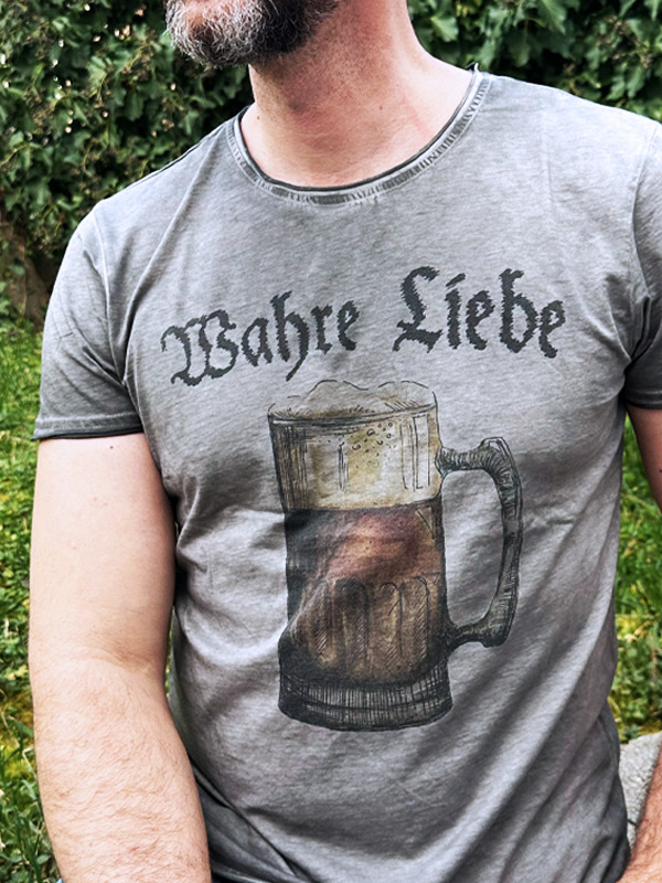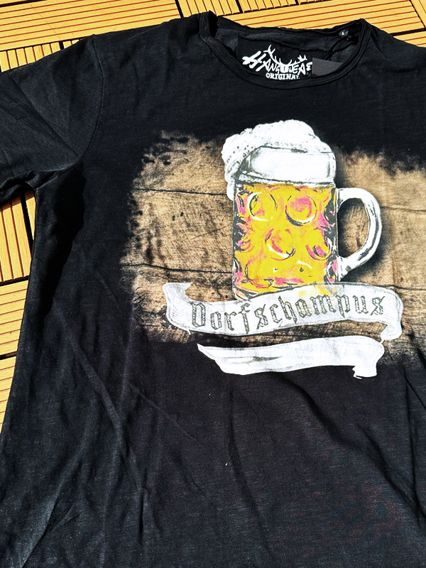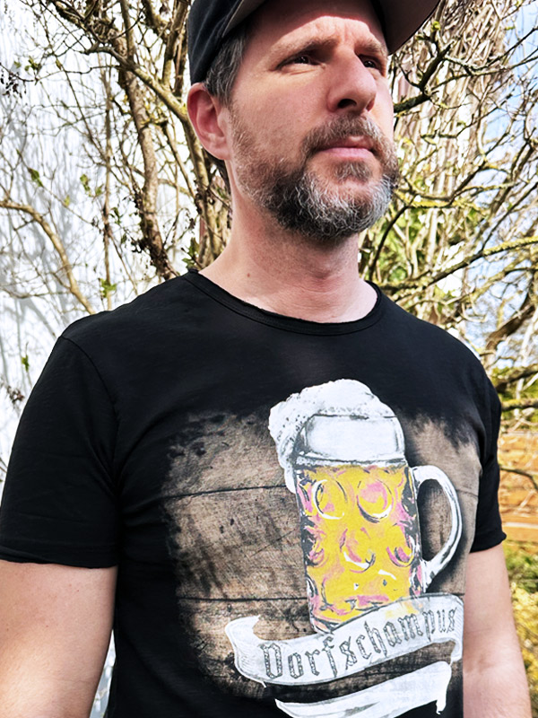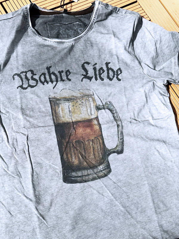 Thematisch decken die Designs eine große Bandbreite ab. Von Après-Ski über Küstenmotive bis hin zu Wein, Grillkultur und natürlich Bier findet sich vieles, was mit Genuss, Lebensfreude und regionaler Identität zu tun hat. Wir haben vier Shirts der Marke getragen, getestet und fotografiert. Schon beim ersten Anziehen fällt auf, wie weich und angenehm sich die Shirts anfühlen. Der Stoff besteht aus 100% Prozent Bio Baumwolle aus Bayern und trägt charakterstarke Namen wie Bernhard, Dorfschampus, Wahre Liebe oder Bonifaz. Der besondere Charakter der Shirts entsteht durch Handarbeit und ein spezielles Färbeverfahren, das jedem Stück eine individuelle Optik verleiht.