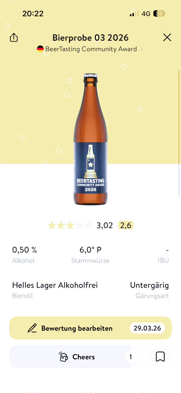 Warum? Ganz einfach weil man super leicht sein Bier einchecken kann. Über die Suche oder den Codescanner sind alle europäischen Biere vermerkt, oder zumindest die Meisten. Aber nun zum beertasting Award und warum wir über Kalea schreiben. Kalea hat uns vor etwa 1 Monat ein Paket mit Flaschen zukommen lassen, die alle das selbe Label hatten. Wir haben uns natürlich gefragt, was das soll und erhielten Antwort durch den Brief. Durch die Biere nehmen wir als Community Teil an de, Community Award 2026, der auch gleichhzeitig die Bewertung für den European beer Star darstellt. Um die Bier nicht erkennen zu können haben sie nur ein einfaches Label mit Barcode darauf.