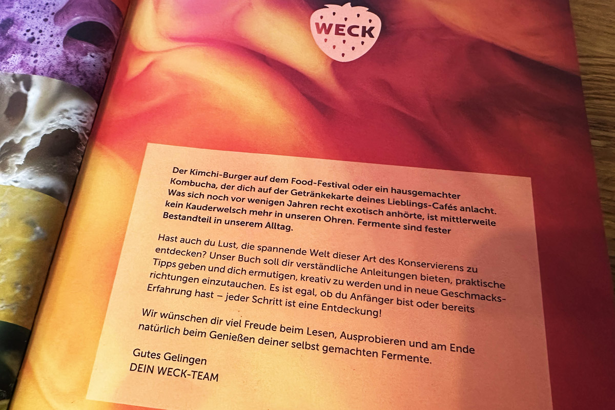 Natürlich Fermentieren ist im Weck Verlag entstanden, was zunächst bei den coolen Einmachgläsern absolut sinnvoll erscheint. Hier findet ihr die Grundlagen, Anleitungen und Rezeptideen aus dem eigenen Verlag.